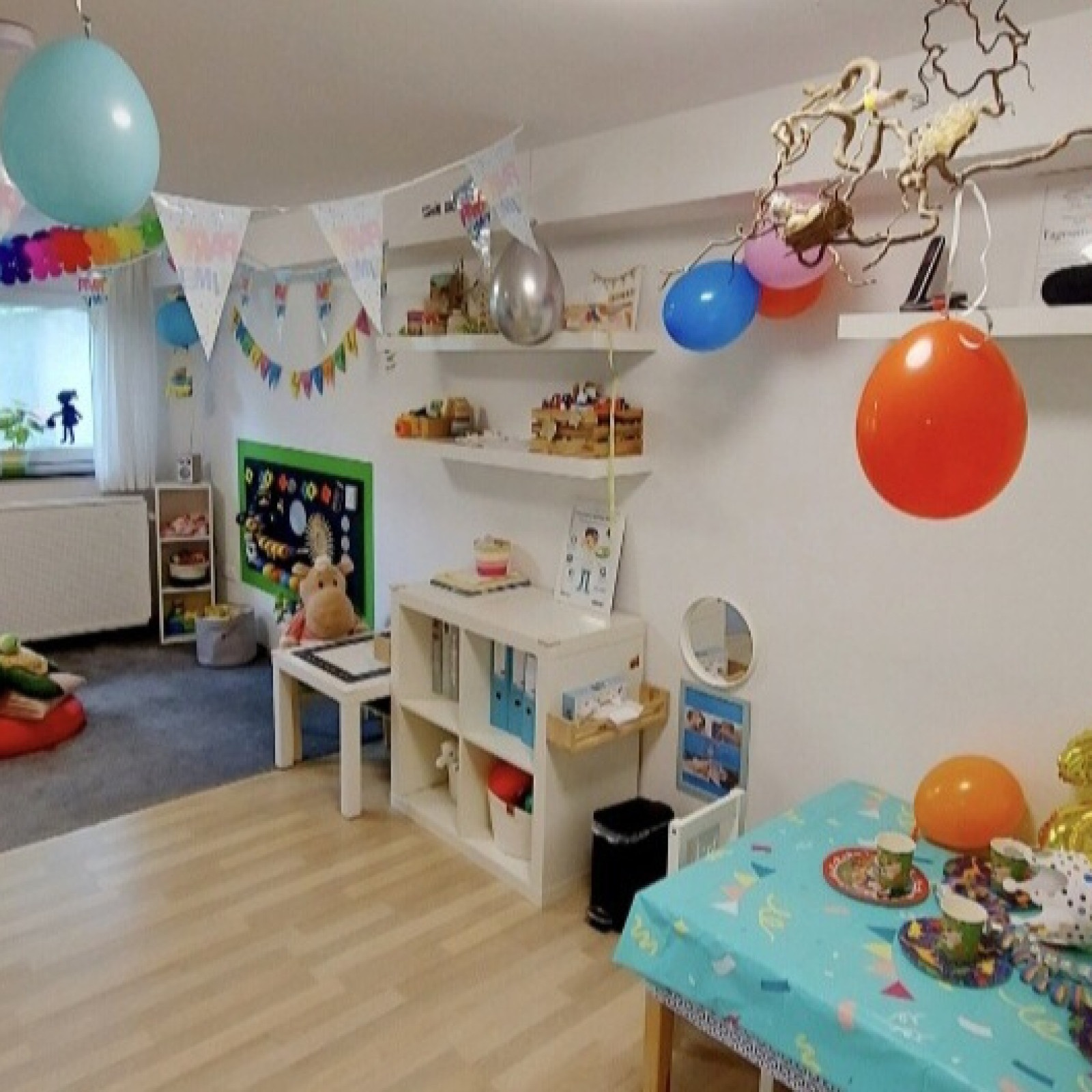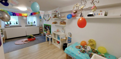 Kinder haben besondere Bedürfnisse an die Einrichtung: der Waschbereich hat einen Wickeltisch, niedrige Waschbecken und eine separate Toilette. Für den Mittagsschlaf oder um sich auszuruhen gibt es den Schlafbereich mit einer eigenen Matratze für jedes Kind. Die Küche ist besonders wichtig: hier bereiten wir – auch oft gemeinsam mit den Kindern – die Mahlzeiten zu und lassen es uns zusammen am großen Tisch schmecken. In den Räumen gibt es verschiedene Bereiche zum Basteln oder Spielen – mache Bereiche werden auch für verschiedene Anlässe umgeräumt. In den Räumen wird natürlich nicht geraucht.